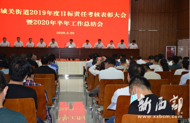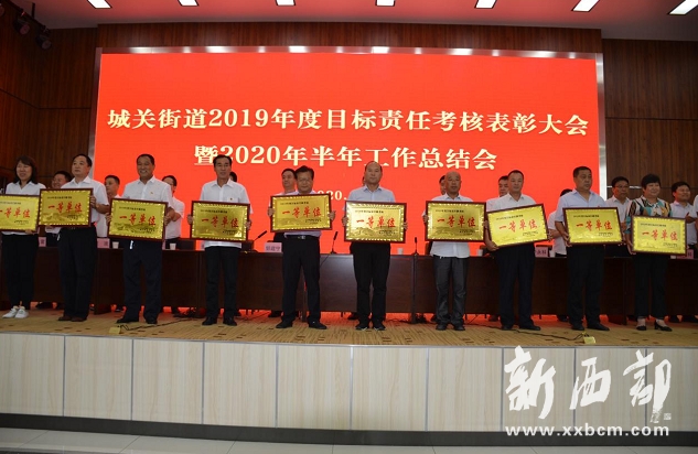 當(dāng)天下午在華保家具公司五樓會議室舉行了城關(guān)街道2019年目標(biāo)責(zé)任考核表彰大會暨2020年半年工作總結(jié)會。會議由街道黨工委副書記郭建寧主持,街道黨工委政法委員李永科、街道辦副主任張建林分別宣讀了城關(guān)街道2019年度目標(biāo)責(zé)任考核和2020上半年工作先進(jìn)集體及個人表彰決定。隨后舉行了隆重?zé)崃业念C獎儀式。