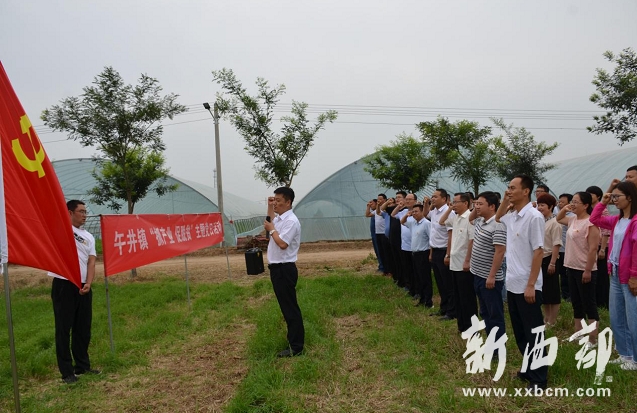 為慶祝中國(guó)共產(chǎn)黨誕生99周年,激勵(lì)全體黨員進(jìn)一步發(fā)揮共產(chǎn)黨員先鋒模范和黨組織的戰(zhàn)斗堡壘作用,在決勝全民小康,決戰(zhàn)脫貧攻堅(jiān)的關(guān)鍵時(shí)刻,扶風(fēng)縣午井鎮(zhèn)黨委舉行“抓產(chǎn)業(yè) 促脫貧”主題黨日活動(dòng)。七月一日,在官坡村蔬菜大棚種植基地,午井鎮(zhèn)全體黨員干部整裝列隊(duì),面對(duì)黨旗重溫入黨誓詞,表達(dá)出了全鎮(zhèn)廣大黨員干部繼續(xù)發(fā)揚(yáng)共產(chǎn)黨人的奮斗精神,迎難而上、沖鋒在前,將鮮紅的黨旗高高飄揚(yáng)在干事創(chuàng)業(yè)的最前線的豪邁之情。