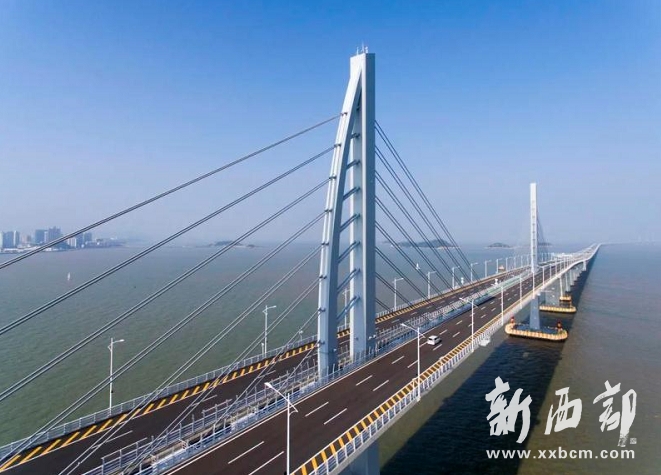 港珠澳大橋跨越伶仃洋,東接香港,西連珠海和澳門,總長約55公里,是粵港澳三地首次合作共建的超大型跨海交通工程、目前世界上最長的跨海大橋。大橋建設(shè)滿足內(nèi)地、香港、澳門三地的最高建設(shè)標準,加上橋址處惡劣的地質(zhì)、海況、天氣等自然因素,使之成為目前世界上建設(shè)難度最大的橋梁之一,曾被英國《衛(wèi)報》稱為“現(xiàn)代世界七大奇跡”之一。2018年10月23日,港珠澳大橋正式開通運營,一橋飛架三地,當驚世界殊。