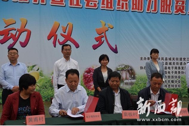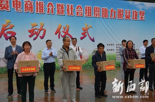 活動現(xiàn)場扶風縣電子商務協(xié)會負責人李朝暉分別與峪村、黃甫、案板村簽訂農(nóng)產(chǎn)品代購代銷協(xié)議。寶雞市旅游協(xié)會、市民爆協(xié)會、寶雞偉思特學校等社會組織為42戶貧困家庭發(fā)放了電飯煲;向9名貧困家庭大學生及2名孤兒各發(fā)放600元資助金。隨后扶風縣委常煒宣傳部方巖部長發(fā)表了講話。