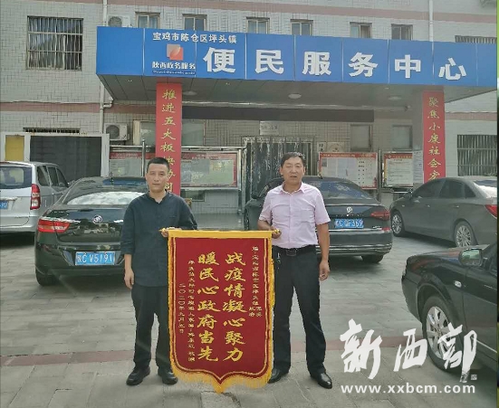 2020年9月8日上午,陽光明媚。坪頭鎮(zhèn)政府大院來了一位村民,他將一面寫著“戰(zhàn)疫情凝心聚力,曖民心政府當(dāng)先”的錦旗送到了鎮(zhèn)領(lǐng)導(dǎo)的手上?!澳銈兲旌貎?、沒日沒夜的執(zhí)勤檢查,為了大家的平安,你們太辛苦了?!彼煌5卣f著感謝話。