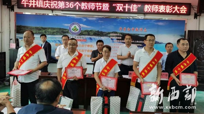 會議由五個議程組成。第一項,全體起立,奏唱國歌。第二項,鎮(zhèn)黨委副書記李艷陽激昂宣讀《午井鎮(zhèn)黨委會、午井鎮(zhèn)人民政府關(guān)于表彰午井鎮(zhèn)“十佳教師”“十佳班主任”的決定》。第三項,伴著悅耳的進行曲,“雙十佳”教師分四批次接收了鎮(zhèn)黨委、鎮(zhèn)政府的授獎表彰。第四項,表態(tài)發(fā)言,擲地有聲。午井初中孫曉偉校長“直面挑戰(zhàn),搶抓機遇,圍繞一個理念,兩個方略,三個目標,三項重點工作,辦好家門口的好學(xué)校,用教育人的情懷做有良知的教育”,“十佳教師”代表午井第二小學(xué)畢蘭老師“我愛我的學(xué)生,我也愛我的學(xué)校,我更愛我的事業(yè)”,“十佳班主任”午井中心小學(xué)張蓉婷老師“六年堅守,執(zhí)著初心,曾經(jīng)的稚嫩變得堅強”。