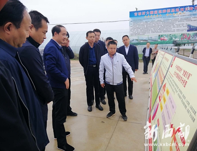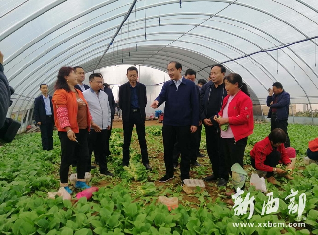 隨后,周宇松來到官坡村大棚蔬菜基地,查看產(chǎn)業(yè)扶貧、穩(wěn)崗就業(yè)工作進(jìn)展。午井鎮(zhèn)黨委書記朱鵬飛詳細(xì)介紹了該鎮(zhèn)發(fā)展壯大村集體經(jīng)濟(jì)“136”模式、產(chǎn)業(yè)發(fā)展現(xiàn)狀和后期規(guī)劃。