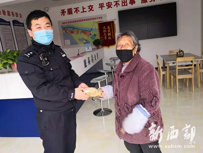 今年2月份的一天早上,已過六旬的閆大媽,拿著熱氣騰騰的“菜盒子”走進(jìn)隴縣公安局南岸新城警務(wù)室,滿臉含笑的硬塞到了民警“小馬”的手里,這一幕被剛剛進(jìn)門辦事的群眾拍了個(gè)正著。閆大媽的家就在警務(wù)室附近,和轄區(qū)里很多群眾一樣,他們?cè)缫呀?jīng)把經(jīng)常來家里“串門”的“小馬”民警當(dāng)成了“自己人”??粗靶●R”為了做好疫情防控工作,起早貪黑穿梭在轄區(qū)里,連一頓熱乎飯都吃上,閆大媽親手烙了“菜盒子”,趕早送進(jìn)了警務(wù)室。
