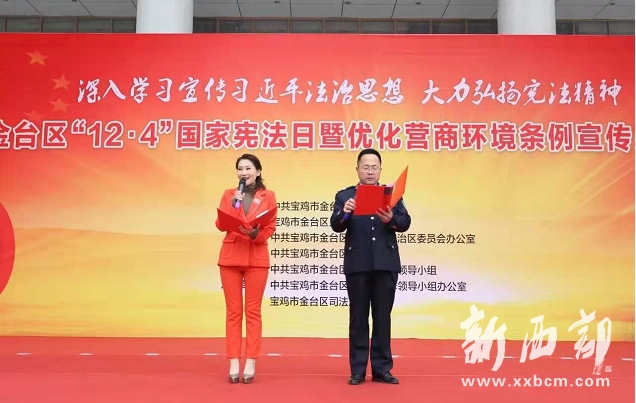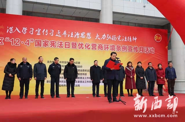 今年12月4日是第七個國家憲法日,為認真學習領會習近平法治思想,深入貫徹落實黨的十九屆五中全會精神,推動全區(qū)深入學習宣傳憲法,弘揚憲法精神,維護憲法權威,12月4日上午,由中共寶雞市金臺區(qū)委、區(qū)人民政府、區(qū)委全面依法治區(qū)委員會辦公室、區(qū)委宣傳部、區(qū)委普法工作領導小組主辦,區(qū)委普法工作領導小組辦公室、區(qū)司法局承辦的以“深入學習宣傳習近平法治思想 弘揚憲法精神”為主題的金臺區(qū)“12·4”國家憲法日暨優(yōu)化營商環(huán)境條例宣傳月活動在金臺市民中心廣場舉行。