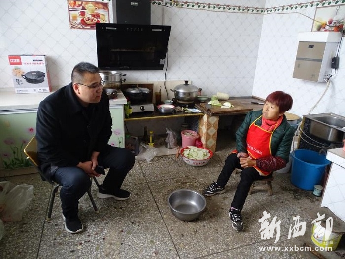 校長(zhǎng)郭高峰(左)正在家訪。