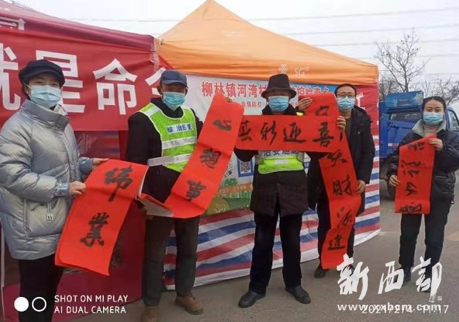 “心想事成興偉業(yè),萬事如意展宏圖?!?月4日,在鳳翔縣柳林鎮(zhèn)河灣村疫情防控檢疫點,值守人員李勤緒和李虎明接過縣文化館贈送的春聯(lián),高興地大聲念了出來。