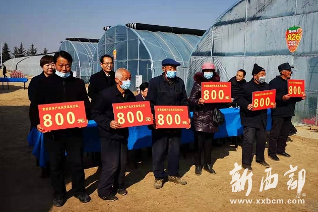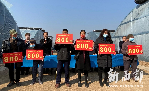 2月8日,寶雞市鳳翔區(qū)南指揮鎮(zhèn)舉辦產(chǎn)業(yè)扶貧基地草莓園項目分紅大會,全鎮(zhèn)12個行政村共78名建檔立卡貧困戶每戶分別領到分紅金800元,合計現(xiàn)金分紅6.24萬元,真正實現(xiàn)了用資產(chǎn)收益向貧困群眾分紅,造福貧困群眾。
