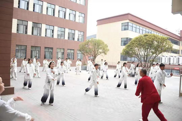 西安市東城一中校長李少臻代表學(xué)校,對大家的光臨表示歡迎,介紹了東城一中兩項工作的推進情況,引領(lǐng)觀摩團參觀了新建圖書館、體育館和合唱、太極等特色社團。