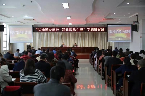 為通過(guò)延安精神學(xué)習(xí)教育,培養(yǎng)造就忠誠(chéng)干凈擔(dān)當(dāng) 的高素質(zhì)干部隊(duì)伍,4月15日下午,寶雞市金臺(tái)區(qū)委宣傳部聯(lián)合區(qū)委黨校、區(qū)延安精神研究會(huì),舉辦“弘揚(yáng)延安精神 凈化政治生態(tài)”專題研討班。金臺(tái)區(qū)委常委、宣傳部部長(zhǎng)張曉輝圍繞黨史學(xué)習(xí)教育作了專題宣講,寶雞市延安精神研究會(huì)常務(wù)副會(huì)長(zhǎng)趙周榮作延安精神專題輔導(dǎo)。