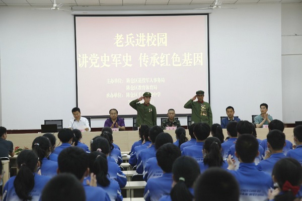 5月25日下午,陳倉老兵魚建民通過講述自身參戰(zhàn)經(jīng)歷,將紅色基因融入師生們的血脈中。