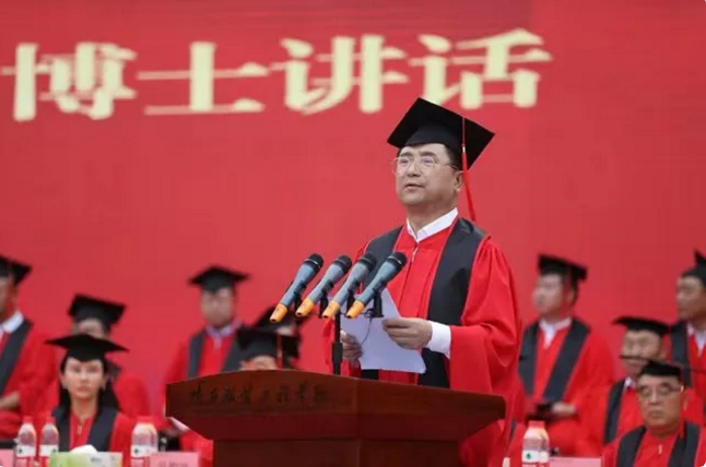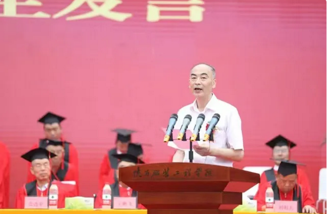 董事長呂明博士發(fā)表熱情洋溢的講話,他回顧了28年求師問道、創(chuàng)業(yè)辦學(xué)的艱辛歷程,介紹了國際上先進(jìn)的教學(xué)理念和教育成就,闡釋了建立新時(shí)代無邊際幸福大學(xué)的偉大夢想。深情寄語陜服學(xué)子,無論何時(shí)何地,都要始終把自己的理想與祖國的前途、把自己的人生同中華民族的命運(yùn)緊密相聯(lián),為實(shí)現(xiàn)中華民族偉大復(fù)興的中國夢注入蓬勃的青春力量;勉勵(lì)同學(xué)們做人要真誠、要勇敢的做好自己,拒絕“躺平”、內(nèi)卷,善待自己、關(guān)愛他人、服務(wù)社會(huì)、創(chuàng)造價(jià)值;希望畢業(yè)生們未來無論身處何地,都不在困境中消沉,不在順境中迷失,始終不忘啟程時(shí)的“初心”。