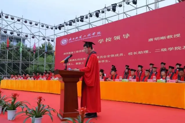 6月26日上午,陜西服裝工程學(xué)院在校園噴泉音樂廣場舉行2021屆學(xué)生畢業(yè)典禮暨學(xué)位授予儀式。常務(wù)副校長李望國教授主持典禮暨學(xué)位授予儀式。董事長呂明博士、校長張義明教授、嘉賓代表陜西科技大學(xué)院原黨委書記潘中偉教授講話。教師代表馬克思主義學(xué)院院長顏毓?jié)嵔淌?、畢業(yè)生代表孟慶涵同學(xué)、畢業(yè)生家長代表張陽進(jìn)先生發(fā)言。陜西省政協(xié)原副主席張生朝,陜西省政府原秘書長薛漢軍教授等來自全國各地、長期關(guān)心支持幫助我校發(fā)展的原省政府領(lǐng)導(dǎo)、省內(nèi)高校原校領(lǐng)導(dǎo)、我校老領(lǐng)導(dǎo)老同志、行業(yè)協(xié)會(huì)、研究院、合作企業(yè)高管、中小學(xué)校校長、社會(huì)各界著名人士、畢業(yè)生家長代表、杰出校友代表、新聞媒體單位代表等出席。校董事長呂明博士、副董事長呂超先生、鎬京集團(tuán)副總裁姚南西博士、校長張義明教授、黨委書記督導(dǎo)專員溫鋒教授、副校長吳俊林教授、李宗領(lǐng)教授及校學(xué)位委員會(huì)全體成員主席臺(tái)就座。