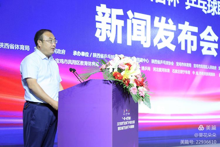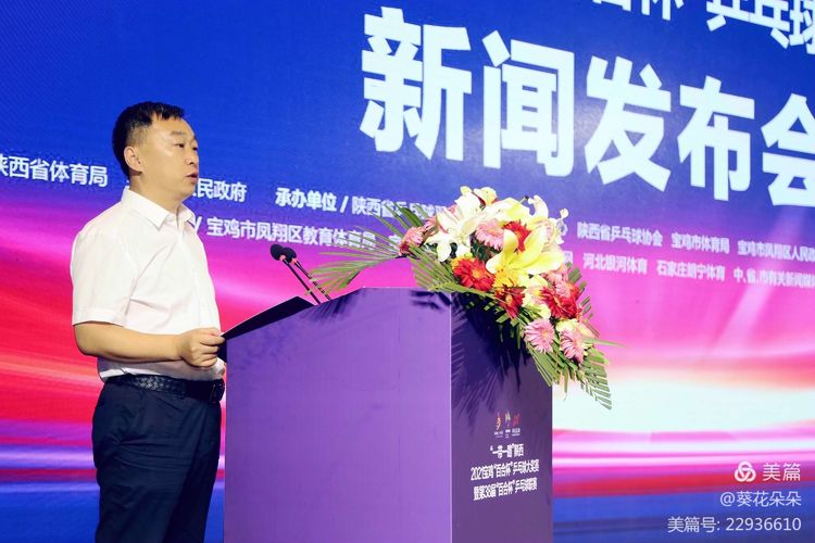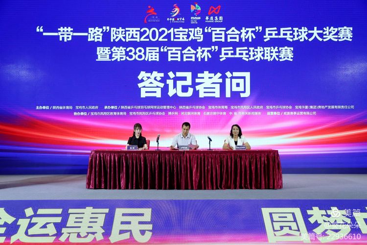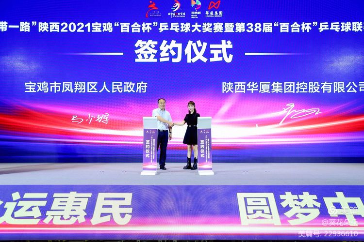 7月4日上午,“一帶一路”陜西2021寶雞“百合杯”乒乓球大獎賽暨第38屆“百合杯”乒乓球聯(lián)賽新聞發(fā)布會在西安舉辦。據(jù)介紹,賽事將于7月9日至11日在陜西省寶雞市鳳翔體育館舉行,屆時,來自陜西、寧夏、青海、甘肅、重慶、上海、江蘇、浙江、山東、山西、河南、河北、遼寧等13余個省20余個城市地區(qū)的210支代表隊千余名乒乓球運動員參加。當日發(fā)布會現(xiàn)場,陜西省體育局經(jīng)濟處處長李佳蔚進行致辭,寶雞市體育局局長任小康介紹賽事籌備情況,鳳翔區(qū)與陜西華廈集團控股有限公司簽訂冠名商協(xié)議,寶雞市體育局與威贏賽事運營有限公司簽訂戰(zhàn)略合作協(xié)議。省乒羽網(wǎng)管理中心主任盧升虎,省乒乓球協(xié)會主席張秦生,鳳翔區(qū)區(qū)委常委、副區(qū)長馬少輝,鳳翔區(qū)區(qū)委常委、副區(qū)長阿依帕夏·阿不都吾甫爾,陜西華廈集團控股有限公司總裁張羽,威贏賽事運營有限公司董事長吉云波,以及中、省、市30多家媒體參加發(fā)布會。
