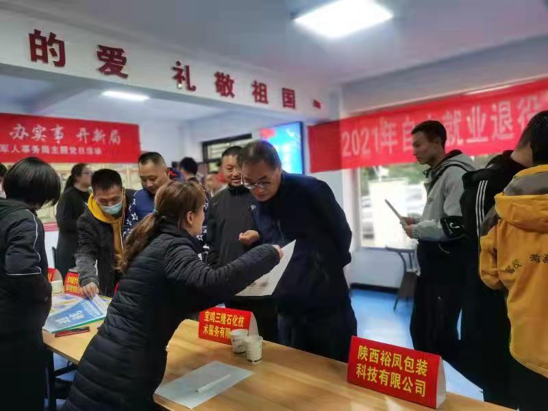一份份老兵簡歷相繼投出,一張張企業(yè)名片逐一發(fā)放。招聘會(huì)當(dāng)日,鳳翔區(qū)退役軍人事務(wù)局組織陜西柳林酒業(yè)、陜西長青能化有限公司、陜西西鳳酒包裝有限公司、陜西寶雞三隆石化有限公司、陜西山海航空集團(tuán)、寶雞至尚軍城等12家企業(yè),為退役軍人提供管理、銷售、制酒工、電工維修、汽車司機(jī)、商業(yè)服務(wù)、辦公文員等就業(yè)崗位120多個(gè),現(xiàn)場投遞簡歷56人,達(dá)成就業(yè)意向35人。