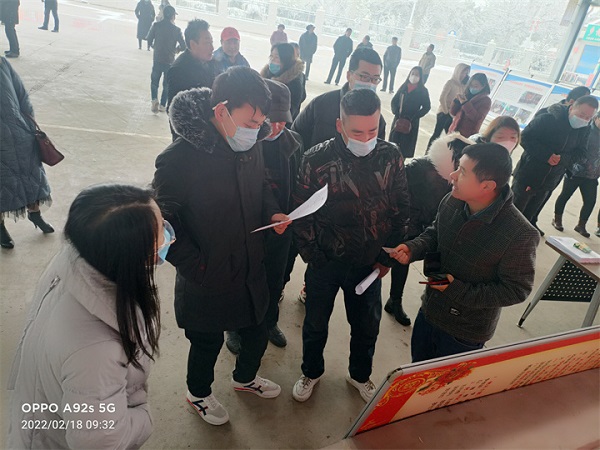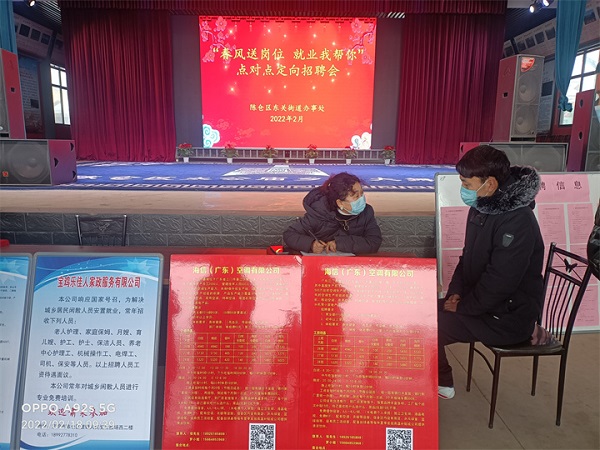 2月18日,陳倉區(qū)人社局、區(qū)就業(yè)服務(wù)中心聯(lián)合東關(guān)街道在轄區(qū)太公廟村廣場(chǎng)舉行的2022年“春風(fēng)送崗位 就業(yè)我?guī)湍恪秉c(diǎn)對(duì)點(diǎn)定向招聘會(huì)現(xiàn)場(chǎng),盡管大雪紛飛寒氣逼人,但也擋不住求職者們的熱情,往來者絡(luò)繹不絕,紛紛駐足了解招聘信息。