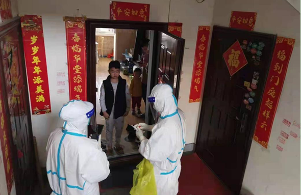 ▲圖為金臺區(qū)醫(yī)務(wù)人員為群眾上門采核酸工作照
