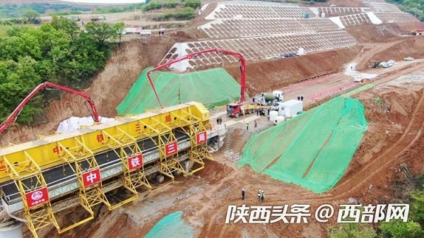 西延高鐵任家臺一號大橋箱梁澆筑現(xiàn)場。(王星輝 攝)