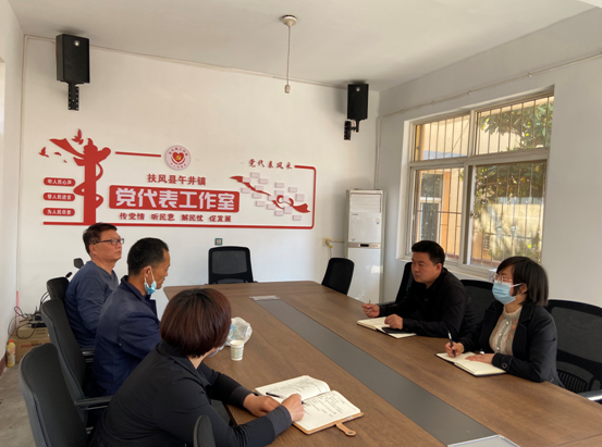 為更好發(fā)揮黨代表聯(lián)系服務(wù)黨員群眾作用,真實傾聽群眾的急難愁盼問題,不斷暢通和拓寬黨代表發(fā)揮作用的渠道,5月5日上午,午井鎮(zhèn)黨委書記李博、副書記楊偉娟等黨代表在鎮(zhèn)黨代表工作室接待我鎮(zhèn)小寨村來訪群眾。代表們仔細(xì)詢問群眾來訪反映的困難和問題,并為群眾講解相關(guān)政策與程序解答疑惑。代表們還就惠民政策落實方面與群眾進(jìn)行了交流座談,聽取了群眾的意見建議,并感謝群眾對鎮(zhèn)村工作的關(guān)心與支持。