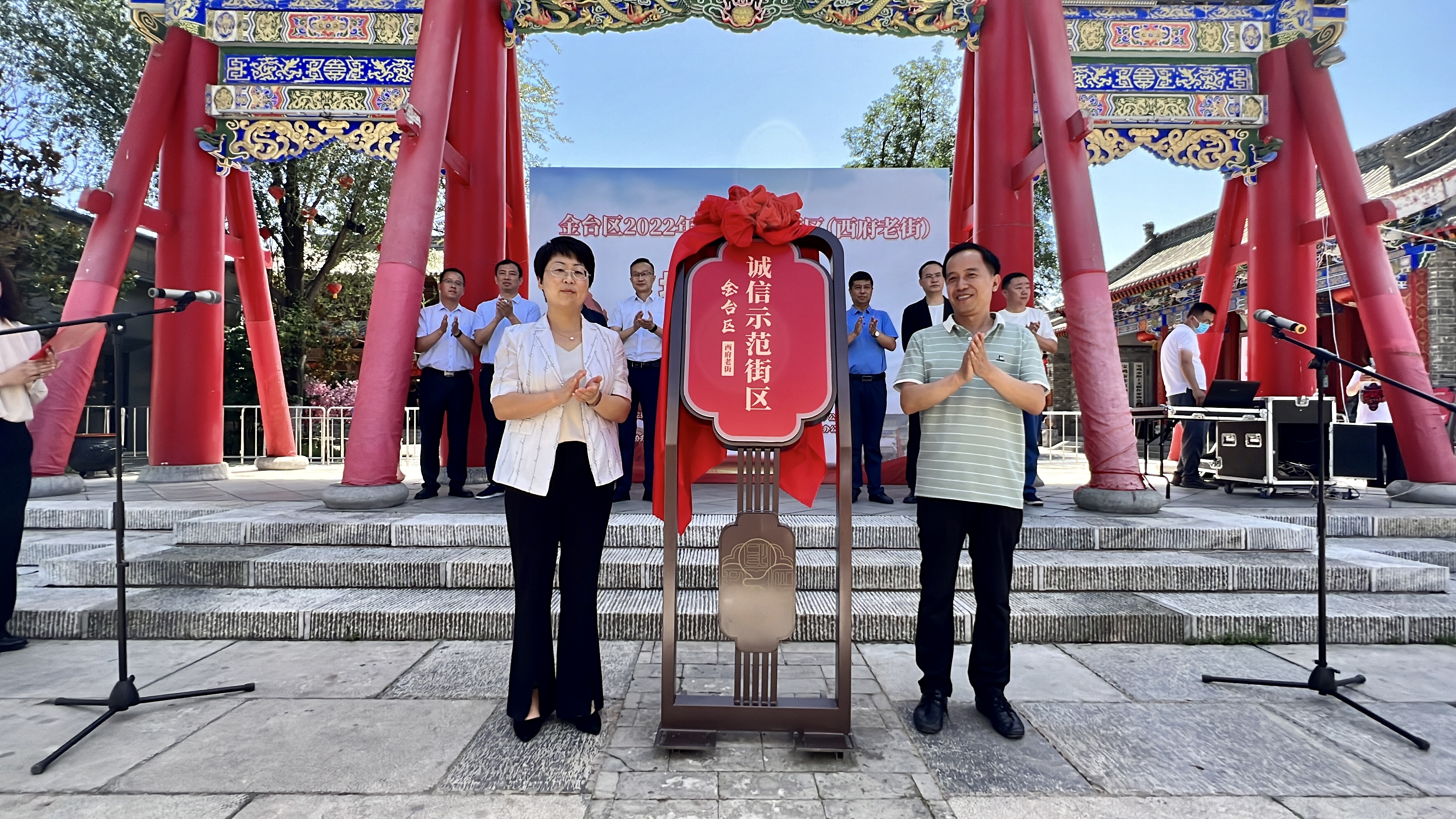 6月14日上午,在第十五個(gè)“信用記錄關(guān)愛(ài)日”到來(lái)之日,寶雞市金臺(tái)區(qū)誠(chéng)信示范街區(qū)揭牌儀式在西府老街舉行,金臺(tái)區(qū)委常委、副區(qū)長(zhǎng)趙玲麗參加揭牌儀式。