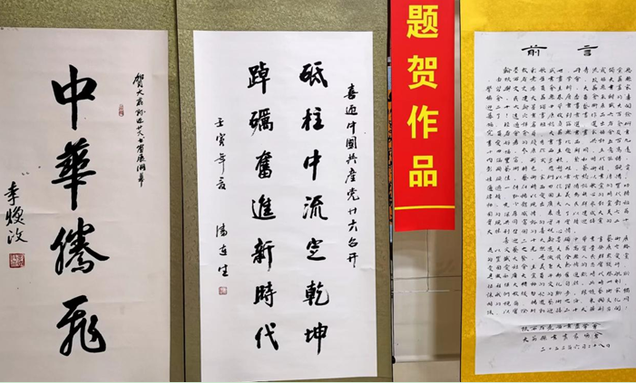中國老年書畫研究會常務理事、陜西省老年書畫學會主席、鄭鑫利;陜西省老年書畫學會副主席史選向;陜西省老年書畫學會藝術顧問總代表、省老年書畫學會研究員周易;陜西省老年書畫學會副秘書長、省會研究員白鹿;陜西省老年書畫學會藝術顧問、省會研究員郭浚初;陜西省老年書畫學會研究員、驪簏書畫會會長趙志軍和陜西省老年書畫學會藝術顧問、省會研究員王權宏分別向大荔縣書畫學會贈送書畫作品。