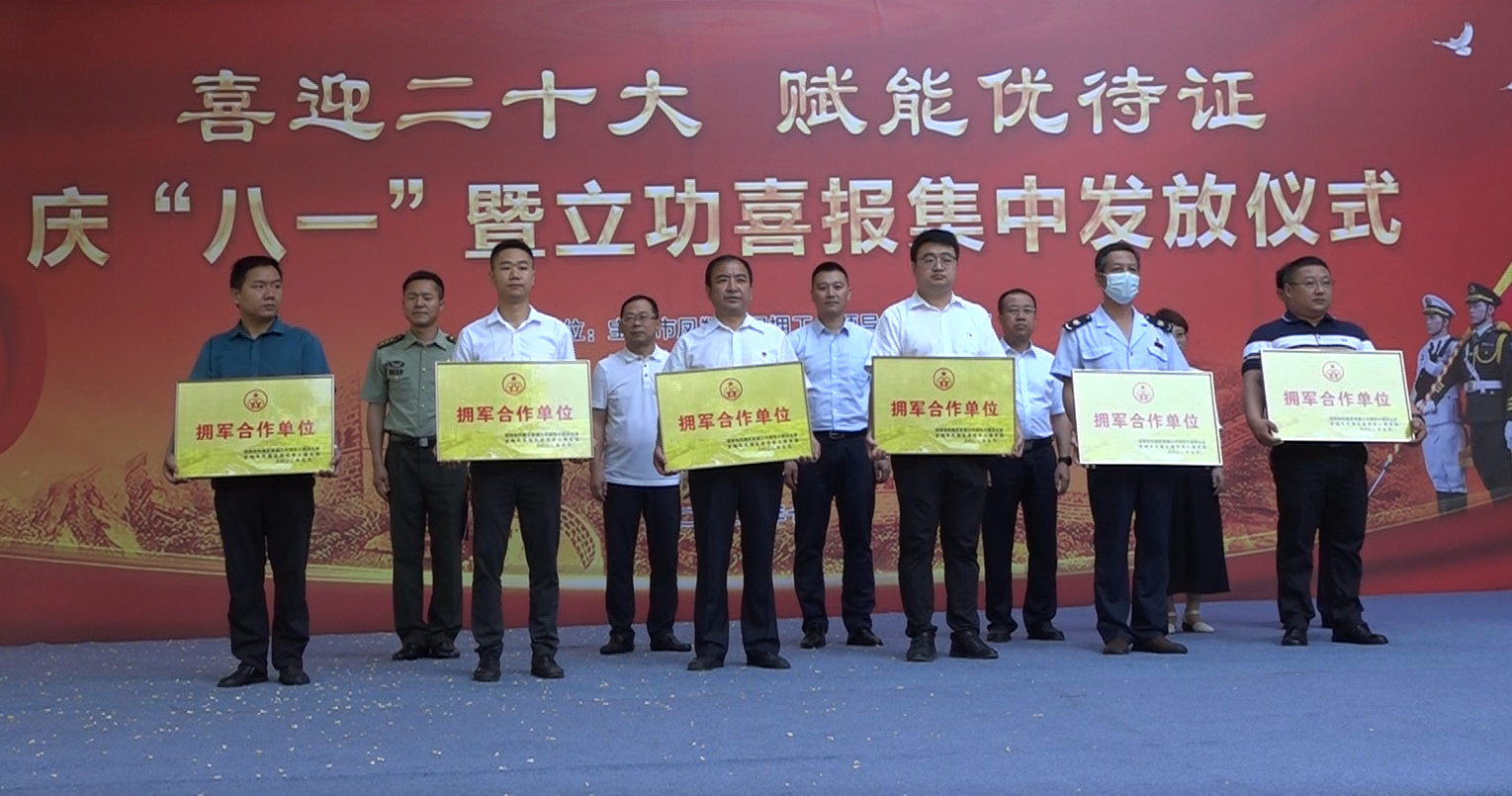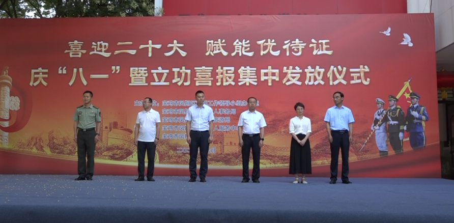 7月28日,在鳳翔區(qū)政府大門西側(cè)舉行“喜迎二十大 賦能優(yōu)待證”慶八一暨立功喜報集中發(fā)放活動,區(qū)委常委、政法委書記郭亞波,區(qū)人大常委會副主任宋利鋒,區(qū)政府副區(qū)長、區(qū)公安局分局局長李忠,區(qū)政協(xié)副主席王紅玲,區(qū)人武部部長劉永強(qiáng)及相關(guān)企業(yè)負(fù)責(zé)人參加活動。