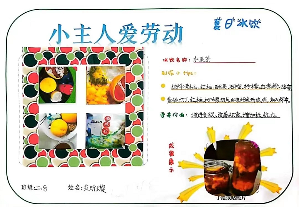 老師和孩子們總結(jié)了暑假大隊部安排的“假期小主人”活動中“我們愛勞動”的環(huán)節(jié),孩子們在一起分享交流了假期做涼拌菜、做冰飲的感受和收獲。紛紛表示,勞動雖然很辛苦卻也很有趣,以后要多學(xué)勞動技能,成為家人的小幫手。