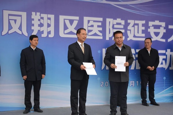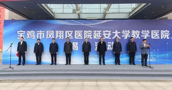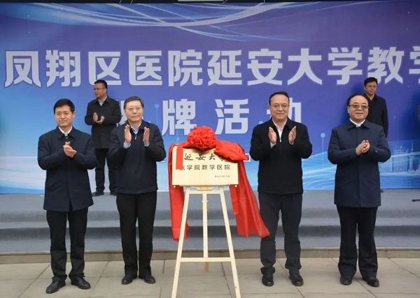 活動中,延安大學(xué)教務(wù)處處長呂磊宣讀了寶雞市鳳翔區(qū)醫(yī)院成為延安大學(xué)醫(yī)學(xué)院教學(xué)醫(yī)院的批復(fù)文件;延安大學(xué)副校長譚虎娃與鳳翔區(qū)醫(yī)院院長韋灝代表雙方簽訂了教學(xué)醫(yī)院協(xié)議;延安大學(xué)黨委書記張金鎖、區(qū)長彭世忠、區(qū)人大常委會主任魯立、區(qū)政協(xié)主席蒲儀明共同為“延安大學(xué)醫(yī)學(xué)院教學(xué)醫(yī)院鳳翔區(qū)醫(yī)院”揭牌。