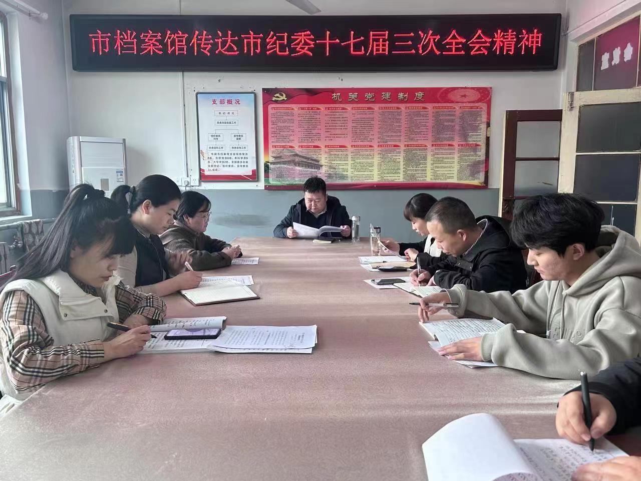 2月22日,檔案館召開支部會議,傳達中紀委第二十屆二次全會、省紀委十四屆二次全會和渭南市紀委六屆三次全會精神,并學(xué)習(xí)華陰市第十七屆紀律檢查委員會第三次全體會議報告。