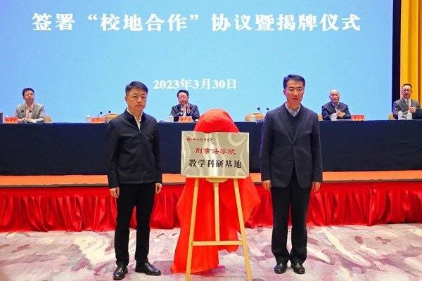 西北政法大學(xué)副校長張軍政,區(qū)委書記王宏強(qiáng)共同為“西北政法大學(xué)刑事法學(xué)院教學(xué)科研基地”揭牌