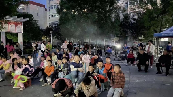 “小區(qū)居民,今天晚上在咱新都市西區(qū)廣場(chǎng)放映紅色愛(ài)國(guó)電影啦,7點(diǎn)20開(kāi)始,大家快來(lái)看!”物業(yè)人員將這個(gè)消息發(fā)到新都市西區(qū)物業(yè)群里時(shí),業(yè)主們紛紛熱情高漲。