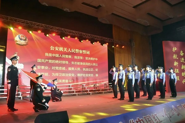 懷揣夢想,肩負使命。12名新入職民警面向警旗、高舉右拳,用鏗鏘有力的誓言詮釋了對公安工作和警察職業(yè)的無比熱愛,展示了志愿獻身崇高公安事業(yè)的堅定決心。