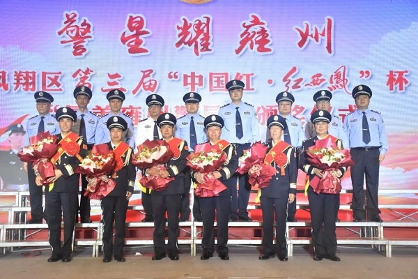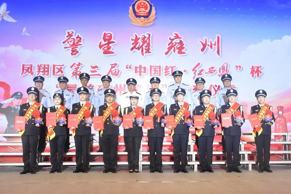 2023年5月25日下午,寶雞市鳳翔區(qū)隆重舉行第三屆“中國紅?紅西鳳”杯“最美雍州警星”頒獎儀式。鳳翔區(qū)委書記王宏強,寶雞市公安局黨委委員、政治部主任白永強,鳳翔區(qū)政協(xié)主席蒲儀明,鳳翔區(qū)委副書記馬少輝,鳳翔區(qū)委常委、虢王鎮(zhèn)黨委書記馮超,鳳翔區(qū)委常委、紀委書記、監(jiān)委主任張曉輝,鳳翔區(qū)委常委、組織部部長魏麗,鳳翔區(qū)委常委、人武部政委李瑋,鳳翔區(qū)委常委、常務副區(qū)長馬建剛,鳳翔區(qū)委常委、副區(qū)長牛軍濤,鳳翔區(qū)委常委、政法委書記郭亞波,鳳翔區(qū)委常委、宣傳部部長賈亞斌,鳳翔區(qū)人大常委會副主任宋利鋒,鳳翔區(qū)總工會黨組書記、主席陳勇鋒,鳳翔高新區(qū)黨工委書記、管委會主任王軍勝,區(qū)級各部門及各鎮(zhèn)主要負責同志,大會協(xié)辦單位陜西西鳳酒股份有限公司領導,市公安局鳳翔分局班子成員,民警、輔警代表,退休民警代表,民輔警家屬代表及社會各界代表共計460余人參加頒獎儀式。