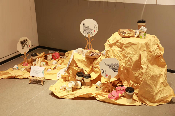 三個主題展區(qū)除展出單體作品外,還專設了師生合作的主題表達的藝術(shù)裝置。這些靈動的裝置設計,通過高低錯落的物品布局、不同材質(zhì)、造型的器具選擇、物品色彩的過渡與明暗色調(diào)的處理,呈現(xiàn)了老師和孩子們對主題內(nèi)容深刻內(nèi)涵的理解表達與藝術(shù)構(gòu)思。
