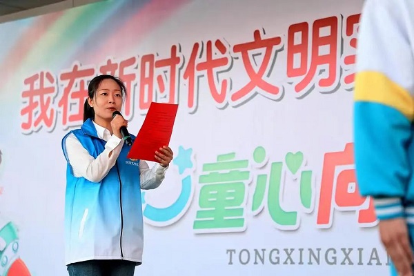活動(dòng)現(xiàn)場(chǎng)鳳翔區(qū)新時(shí)代文明實(shí)踐宣講員馬麗萍領(lǐng)學(xué)習(xí)近平總書(shū)記對(duì)少年兒童的殷殷寄語(yǔ)。