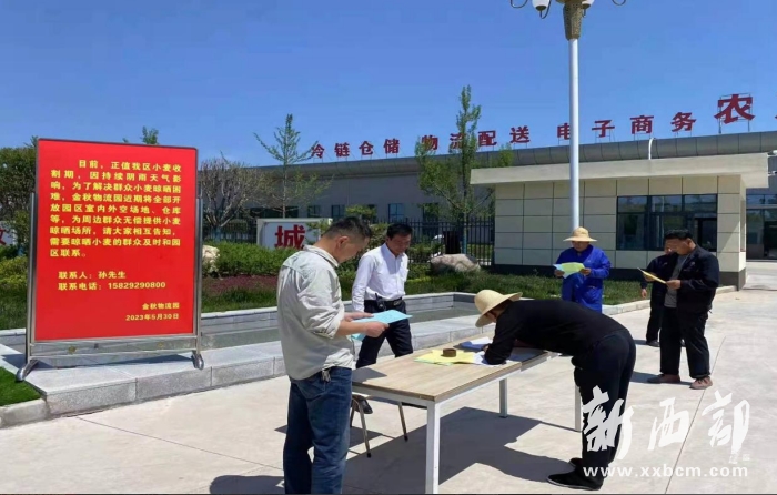 “24小時(shí)提供小麥晾曬場(chǎng)、為群眾開(kāi)放室內(nèi)外場(chǎng)地庫(kù)房……”。隨著一輛輛滿載小麥的車輛進(jìn)入園區(qū),許多群眾揮汗晾曬小麥,大片空地上新收割的麥子“愜意”地享受陽(yáng)光的熱火場(chǎng)面呈現(xiàn)在眼前……。這是近日在陜西省寶雞市鳳翔金秋物流園門(mén)口,看到的大幅通告和廠區(qū)內(nèi)的繁忙場(chǎng)面。