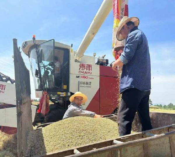 小麥收割在即,村里缺乏農(nóng)機的問題擺在面前,村支書到鳳翔等地尋找農(nóng)機均未果后。村集體籌措資金43萬元,購置一臺玉米小麥兩用收割機,從根本上解決了夏收作業(yè)缺乏農(nóng)機的問題。駐村工作隊加大信息宣傳力度,為外來作業(yè)農(nóng)機搞好服務(wù)等方式,引進中小型聯(lián)合收割機15臺,有效滿足了我村麥收工作需要。在夏收工作中注重技術(shù)指導,利用購買農(nóng)機協(xié)定,邀請廠家技術(shù)骨干人員對全村農(nóng)機手培訓指導,并組織專人學習農(nóng)機駕駛技術(shù)。村“四支隊伍”組成技術(shù)服務(wù)組,深入到田間地頭,掌握夏收作業(yè)進展情況,宣傳農(nóng)機安全、跨區(qū)域作業(yè)補助政策。
