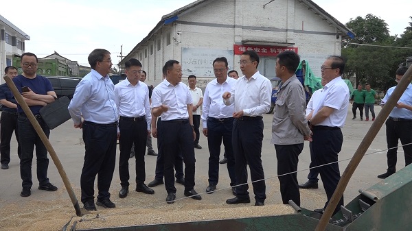 丁勝仁一行前往我區(qū)儲(chǔ)備糧管理有限公司和鳳翔禹隆農(nóng)業(yè)專(zhuān)業(yè)合作社,實(shí)地調(diào)研了夏糧收購(gòu)和“智能化糧庫(kù)”、烘干機(jī)使用以及糧農(nóng)晾曬情況,并詳細(xì)聽(tīng)取夏糧收、購(gòu)、儲(chǔ)等工作進(jìn)展和價(jià)格變化情況。