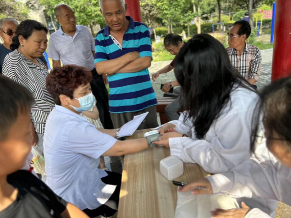 活動現(xiàn)場,學(xué)生們與社區(qū)居民全面互動交流。一方面,為社區(qū)居民義務(wù)量血壓,咨詢居民身體健康狀況,并將自己在學(xué)校所學(xué)的專業(yè)得以實踐應(yīng)用,現(xiàn)場為社區(qū)居民進(jìn)行健康知識宣講,把全科服務(wù)送進(jìn)基層;另一方面,學(xué)生們認(rèn)真調(diào)研記錄,了解居民生活幸福度等情況,以致更好地做好實踐服務(wù)。
