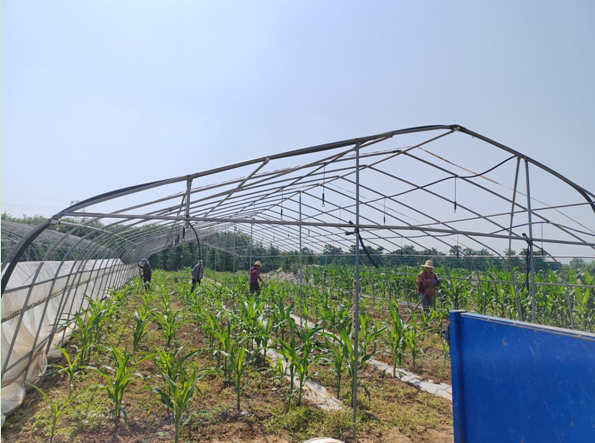 46歲的村民劉巧紅,正在寶雞華偉興茂農(nóng)業(yè)科技有限公司的種植基地給玉米施肥。