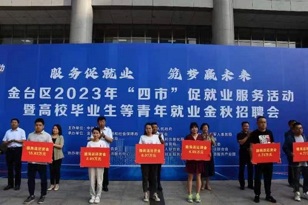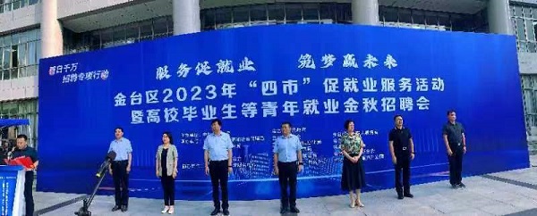 9月15日,金臺(tái)區(qū)2023年“四市”促就業(yè)服務(wù)活動(dòng)暨青年群體就業(yè)金秋招聘會(huì)在金臺(tái)市民中心廣場(chǎng)舉行。寶雞市人社局副局長(zhǎng)白潔出席活動(dòng)。金臺(tái)區(qū)區(qū)委常委、常務(wù)副區(qū)長(zhǎng)梁瑞利致辭并宣布活動(dòng)啟動(dòng)。