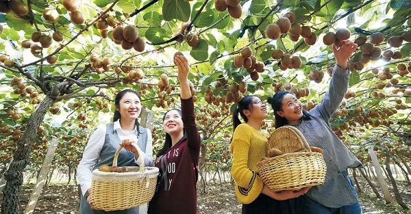 1200年前,唐代大詩人岑參有詩云:“中庭井闌上,一架獼猴桃。……”這優(yōu)美的詩句告訴我們,世界獼猴桃的故鄉(xiāng)在中國,中國獼猴桃的發(fā)源地就在陜西。眉縣從1978年開始進(jìn)行獼猴桃種質(zhì)資源普查,經(jīng)過四十多年的發(fā)展,目前全縣獼猴桃種植面積30.2萬畝,年產(chǎn)量53.5萬噸,綜合產(chǎn)值60億元。眉縣獼猴桃是國家地理標(biāo)志保護(hù)農(nóng)產(chǎn)品、國家級生態(tài)原產(chǎn)地保護(hù)產(chǎn)品、全國名特優(yōu)新農(nóng)產(chǎn)品;眉縣先后榮獲“中國獼猴桃之鄉(xiāng)”“中國特色農(nóng)產(chǎn)品優(yōu)勢區(qū)”“國家級農(nóng)產(chǎn)品地理標(biāo)志示范樣板”等稱號。2022年全縣農(nóng)村居民人均可支配收入達(dá)1.7萬元,其中80%以上的收入來自獼猴桃,小小獼猴桃已成為眉縣老百姓名副其實(shí)的“致富果”“幸福果”。