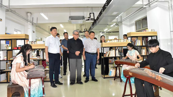 品茗正口有余香,又被婉轉(zhuǎn)動聽的古箏聲所吸引??吹胶⒆觽儖故斓膿芘傧?,胡主任講到,一所學(xué)校不應(yīng)只有讀書聲,還應(yīng)該有歌聲樂聲,以文化人,以美育人,讓學(xué)生學(xué)會欣賞美、創(chuàng)作美。