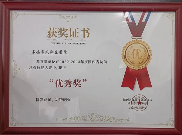 近期,從陜西省院前急救技能大賽會務組傳來喜訊,鳳翔區(qū)醫(yī)院在2022—2023年度陜西省院前急救技能大賽中獲得“優(yōu)秀獎”的榮譽稱號。