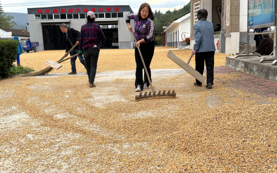 2023年10月16日,村委會大院一片歡聲笑語,董家村駐村干部和村民一起擼起袖子、俯下身子,將收割機收回來的18畝金燦燦的玉米進行晾曬。下午天氣突然變陰,駐村干部又和村民一起將地上晾曬的玉米收起來。村民激動地說,這真是大家心里的好干部,駐村又“助村”啊!