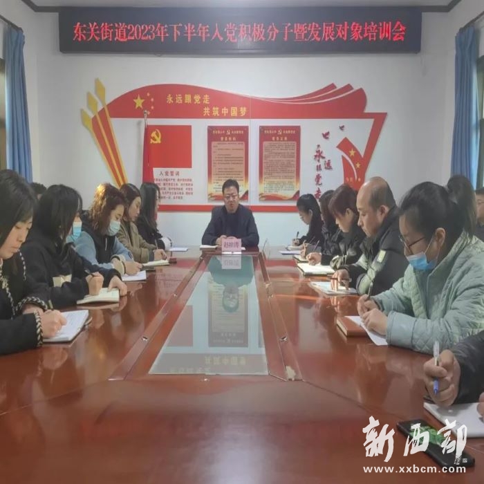 為進一步提高發(fā)展黨員質(zhì)量,落實全面從嚴治黨要求,有效夯實黨員發(fā)展基礎(chǔ),為黨的事業(yè)注入新鮮血液,11月16日-18日,陳倉區(qū)東關(guān)街道舉辦2023年下半年入黨積極分子暨發(fā)展對象培訓班,參訓學員38名。本次培訓旨在促進入黨積極分子、發(fā)展對象牢固掌握黨的基本知識,堅定理想信念,端正入黨動機,提高思想政治素質(zhì),真正實現(xiàn)組織上入黨和思想上入黨相統(tǒng)一。