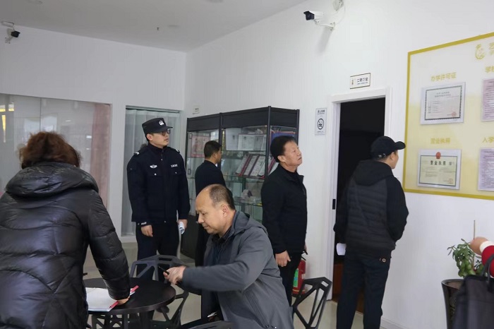 本次聯(lián)合督查,采取不打招呼、直赴現(xiàn)場方式,嚴格對照《校外培訓機構消防安全管理九項規(guī)定》要求,重點“對校外培訓機構消防安全主體責任落實情況、場所消防安全設置達標情況、火災危險源管理規(guī)范程度、消防安全疏散條件具備情況、日常防火檢查巡查到位情況、培訓期間值班值守情況、消防設施器材管理規(guī)范情況、宣傳教育培訓演練開展情況、培訓場地條件是否合規(guī)、安防器材是否到位、從業(yè)人員資質(zhì)是否核查”等方面進行了全面細致的檢查。對部分校外培訓機構存在的安全問題,當場下發(fā)整改通知書2份,提出具體的整改要求和指導意見,責令其限期整改。同時,檢查人員面對面對滅火器材的使用維護、消除火災隱患和引導疏散逃生的方法,現(xiàn)場進行了再培訓、再強化。