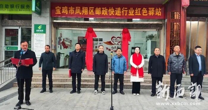 12月12日,寶雞鳳翔區(qū)舉行中國共產(chǎn)黨寶雞市鳳翔區(qū)快遞行業(yè)支部委員會、郵政業(yè)發(fā)展服務(wù)中心成立揭牌暨郵政快遞行業(yè)紅色驛站啟用儀式。市快遞行業(yè)黨委書記白清巖,市快遞行業(yè)黨委副書記趙冬霞,區(qū)委常委、副區(qū)長牛軍濤,區(qū)委常委、組織部長劉飛共同為中心揭牌,區(qū)委組織部、區(qū)委編辦負(fù)責(zé)同志和全區(qū)10家寄遞物流企業(yè)代表參加活動。