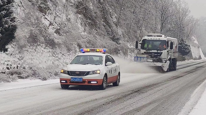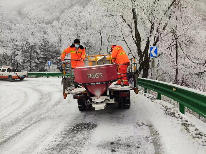 面對這場冰雪,金渭公路段職工以雪為令,立即啟動防滑保暢應(yīng)急響應(yīng)。他們對管養(yǎng)的S219線秦嶺段、縣功段、G310線寶牛段等重點(diǎn)路段進(jìn)行不間斷巡查和除雪作業(yè),合理調(diào)配機(jī)械,通過平地機(jī)、除雪鏟及除雪滾刷三機(jī)聯(lián)動鏟雪除冰和人工及撒布機(jī)拋撒融雪劑輔助防止路面結(jié)冰,全力防滑保暢。