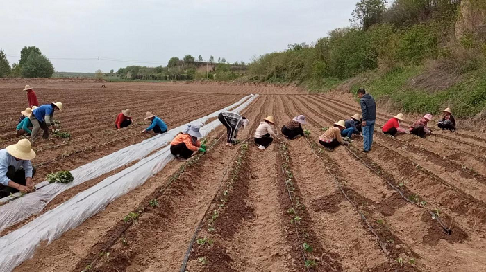 人勤春來早,春耕春管正當時。4月16日,走進鳳翔區(qū)彪角鎮(zhèn)上莊村田間地頭,村民們正在忙碌著,精耕細作種植紅薯,他們平整土地,精心播種,覆蓋薄膜,每一個步驟都做得有條不紊,現(xiàn)場一派熱火朝天的農(nóng)忙景象。